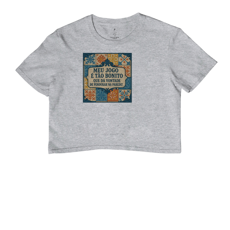 Nossas croppeds destacam-se pelo algodão brasileiro, Cores 100% algodão; exceção: cinzas com 88% algodão e 12% poliéster.